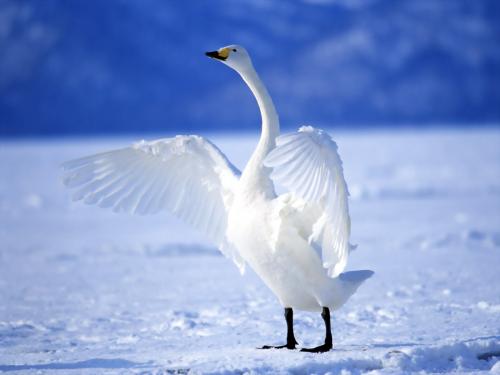 Скачать обои белоснежный лебедь на снегу расправил крылья |