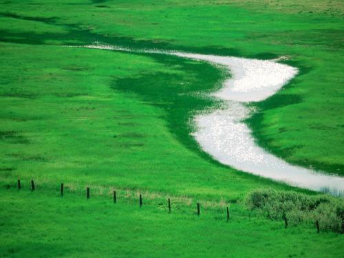 интересный изгиб маленькой речки на зеленом лугу
