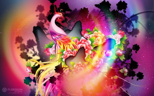 нарисовано в 3d, красивая обои в стиле техно, изображены ирреальные события