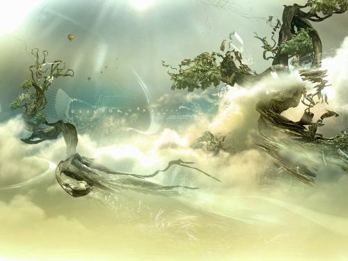 работа в 3d, обои в стиле техно-арт, изображены ирреальные события