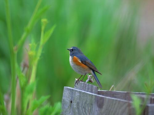 Скачать обои оранжевая с синим и серым птица сидит на заборе |