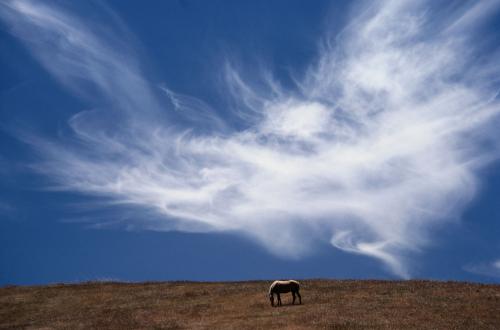 воздушные разводы на небе и лошадь